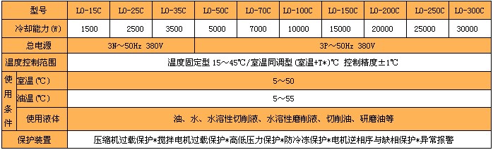 、機種齊全:(1)、具有冷熱兩用機型,油溫低于10℃時開始加熱,達到13℃時停止加熱。另外可提供高溫型機組。(2)、具有溫度固定型和室溫同調(diào)型兩種控制方式(控制面板可調(diào)節(jié)轉(zhuǎn)換),以滿足不同機床的要求。
