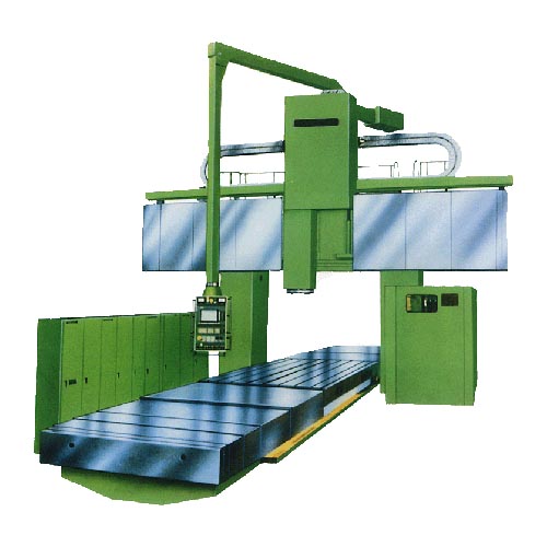 該機床為橫梁固定工作臺移動式數(shù)控龍門鏜銑床。該機床總體布局形式是在龍門框架的橫梁上配置一大功率多功能滑枕式鏜銑頭,任意三軸聯(lián)動的機床。在滑枕鏜銑頭上裝有附件銑頭時,工件一次裝夾可實現(xiàn)五面的銑,鏜,鉆,鉸,攻絲等多工序加工,并可對復(fù)雜型面進行三坐標或多坐標數(shù)控加工,具有高效率,高質(zhì)量特點。