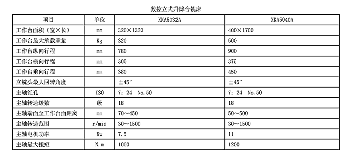 XKA50系列數(shù)控立式升降臺(tái)銑床是一種使用范圍很廣的銑床,可配備FANUC 0i-MD、SIEMENS 828D、華中818B和廣數(shù)983M數(shù)控系統(tǒng),可以完成直線、斜線、曲線輪廓等銑削加工;可以組成各種往復(fù)循環(huán)和框式循環(huán)還可以銑削具有復(fù)雜曲面輪廓的零件,如模具、螺旋槽、葉片、凸輪、樣板等;適用于機(jī)械制造行業(yè)的各類(lèi)部門(mén),也適用于軍工部門(mén)。并可根據(jù)用戶(hù)要求提供第四坐標(biāo),從而實(shí)現(xiàn)四軸四聯(lián)動(dòng)功能,可以實(shí)現(xiàn)在圓柱面、圓錐面等上面加工各種曲線、曲面。 結(jié)構(gòu)特點(diǎn): 機(jī)床主傳動(dòng)為交流電機(jī)驅(qū)動(dòng),18級(jí)齒輪變速;三軸進(jìn)給系統(tǒng)為交流伺服電機(jī)驅(qū)動(dòng);主軸錐孔為(ISO)No.50錐孔,可安裝標(biāo)準(zhǔn)的銑刀或銑夾頭;主軸的軸向位置可調(diào)整,連同套筒一起作軸向伸出;主軸也可以連同銑頭主體一起,在左右各45°范圍內(nèi)調(diào)整成傾斜位置;銑頭的上方裝有半自動(dòng)的裝卸刀機(jī)構(gòu),通過(guò)兩個(gè)按鈕分別控制裝刀和卸刀;機(jī)床采用側(cè)掛式電柜和吊掛式操縱站,機(jī)電一體,整體裝運(yùn),安裝方便,集中操縱但又能多位置操作。